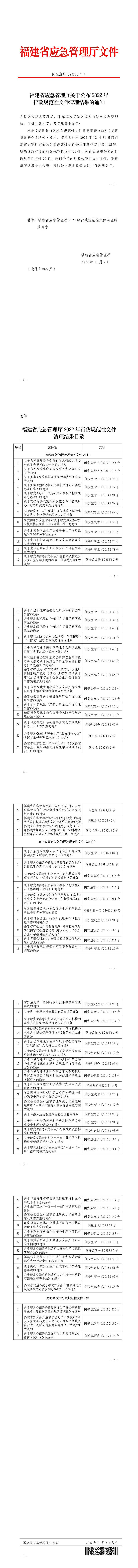 福建省应急管理厅关于公布2022年行政规范性文件清理结果的通知